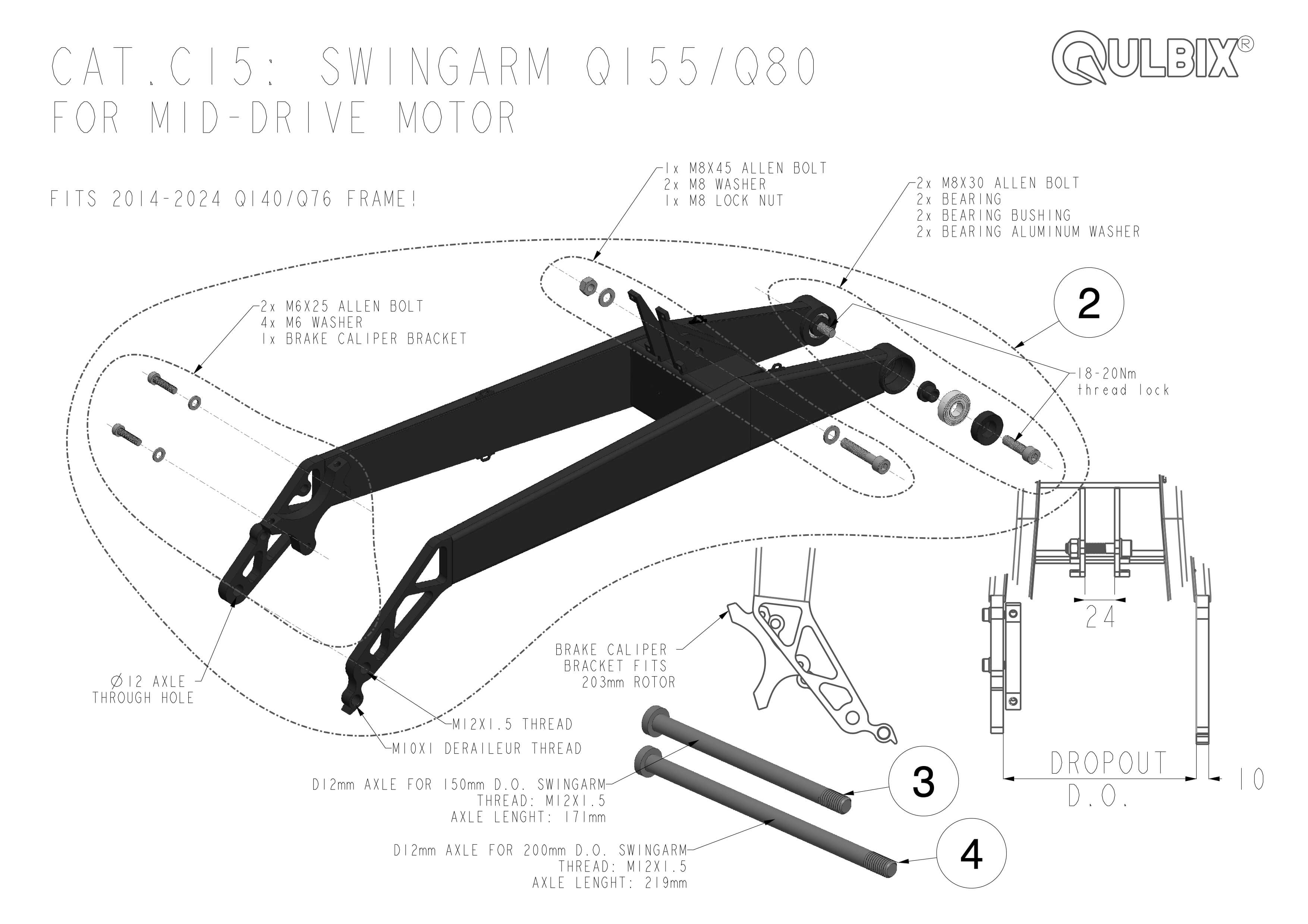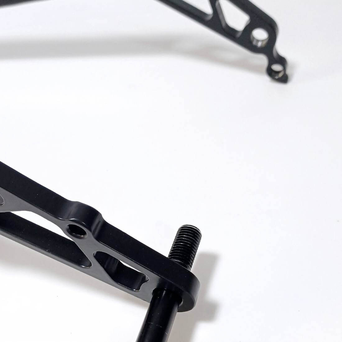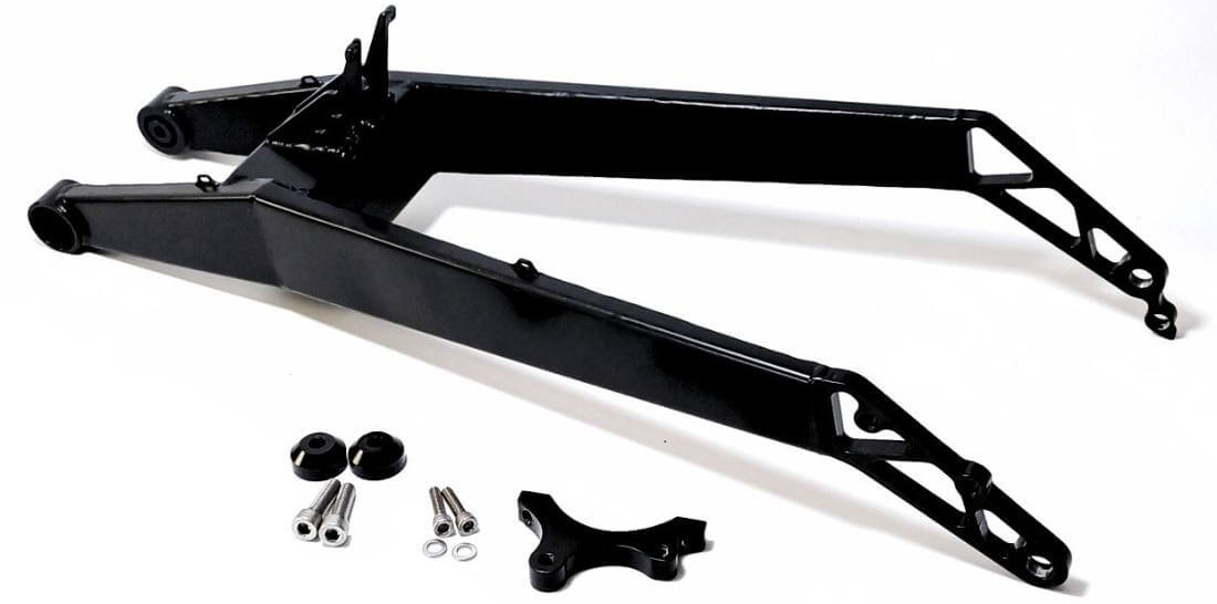 Poleg tega nihajna roka vključuje nosilec zavorne čeljusti, ki je združljiv z 203 mm zavornimi diski. Za pravilno nastavitev lahko uporabite distančnike za nosilec zavorne čeljusti, s katerimi dosežete ustrezen razmik. Ti distančniki so na voljo ločeno in niso vključeni v komplet.